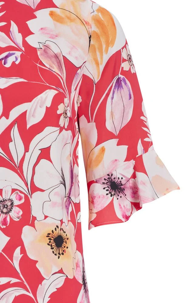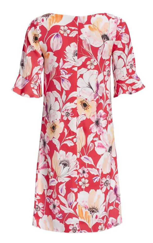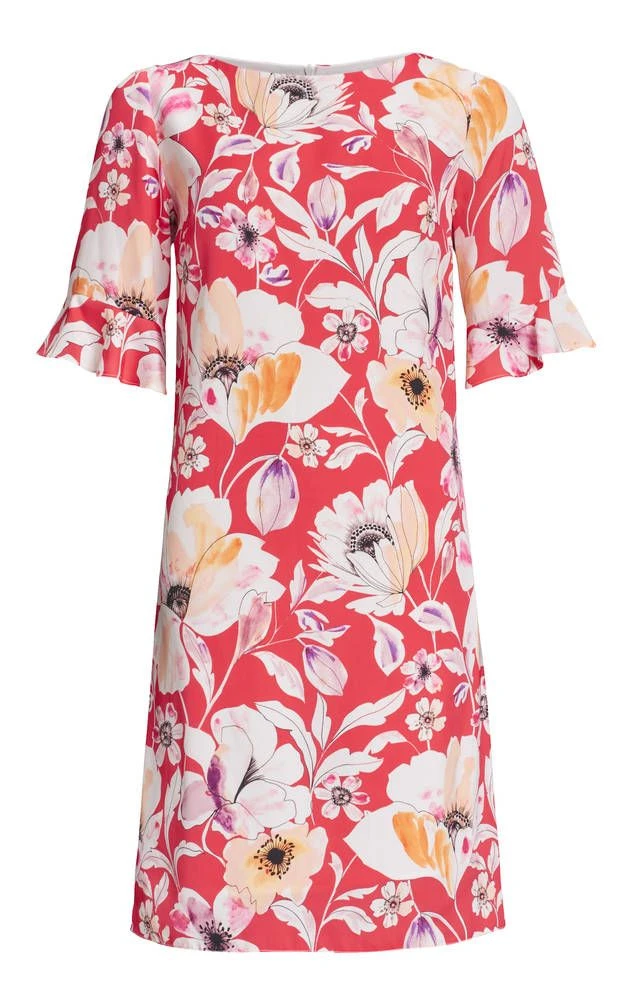 Kaunis suoralinjainen mekko, vajaamittaisilla frillahihoilla.