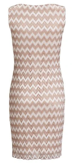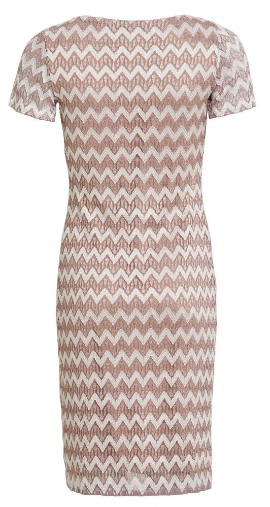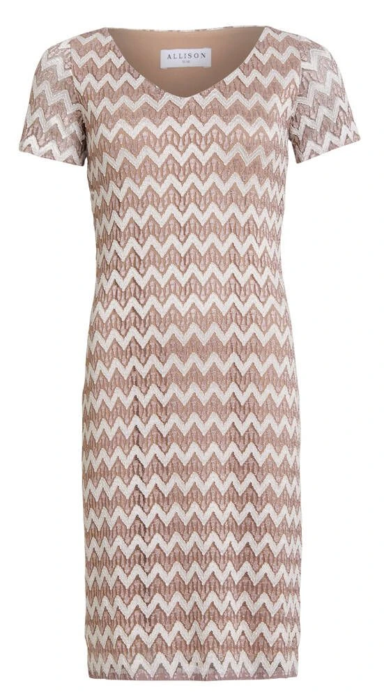 Kaunis siksak-kuvioinen mekko pienillä hihoilla ja v-pääntiellä. Joustava materiaali lisää käyttömukavuutta.
