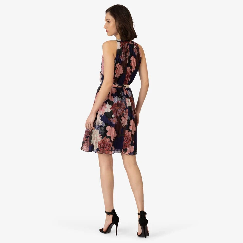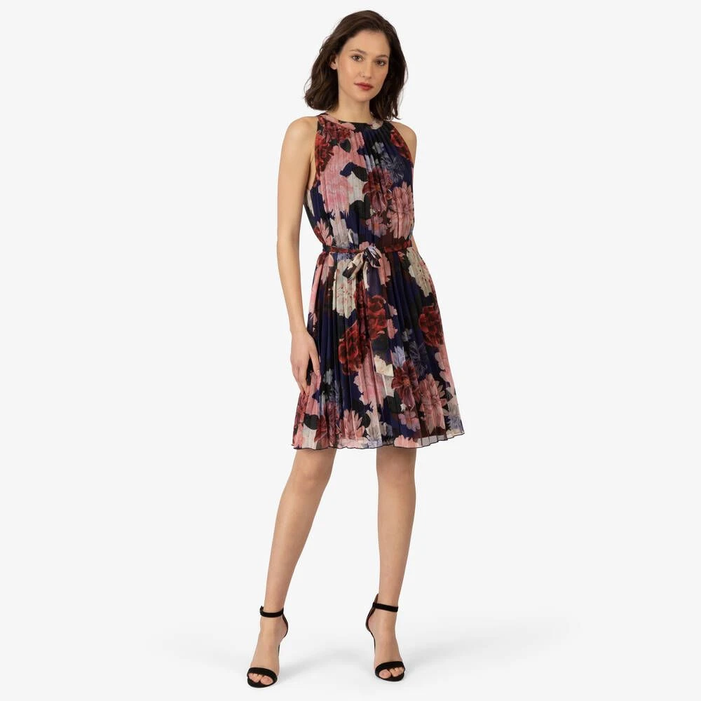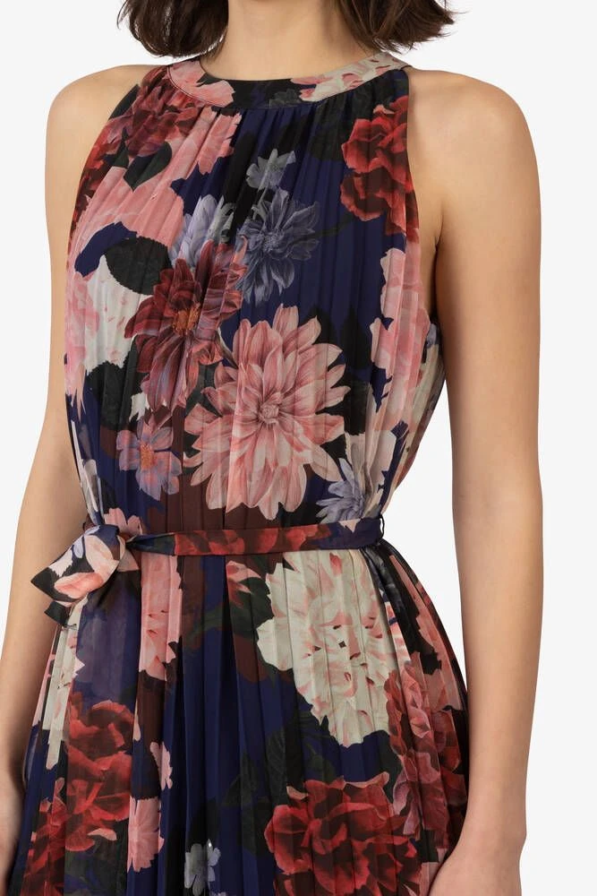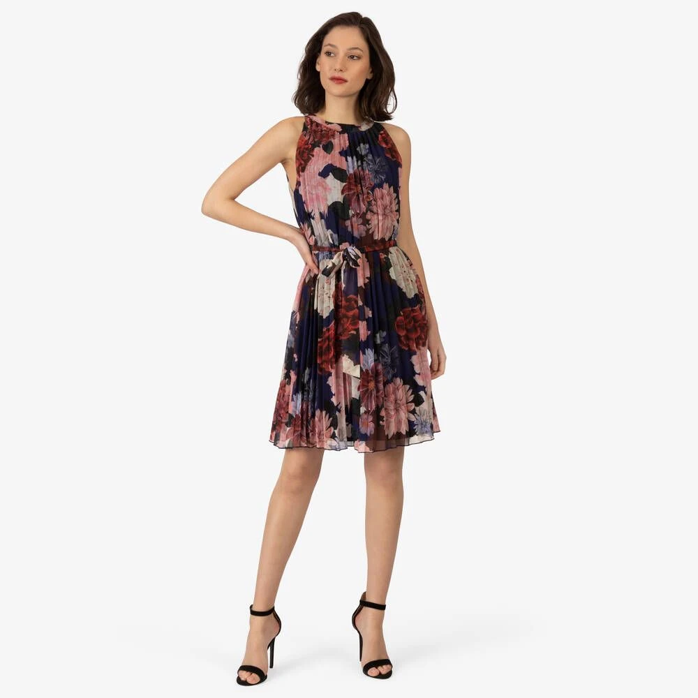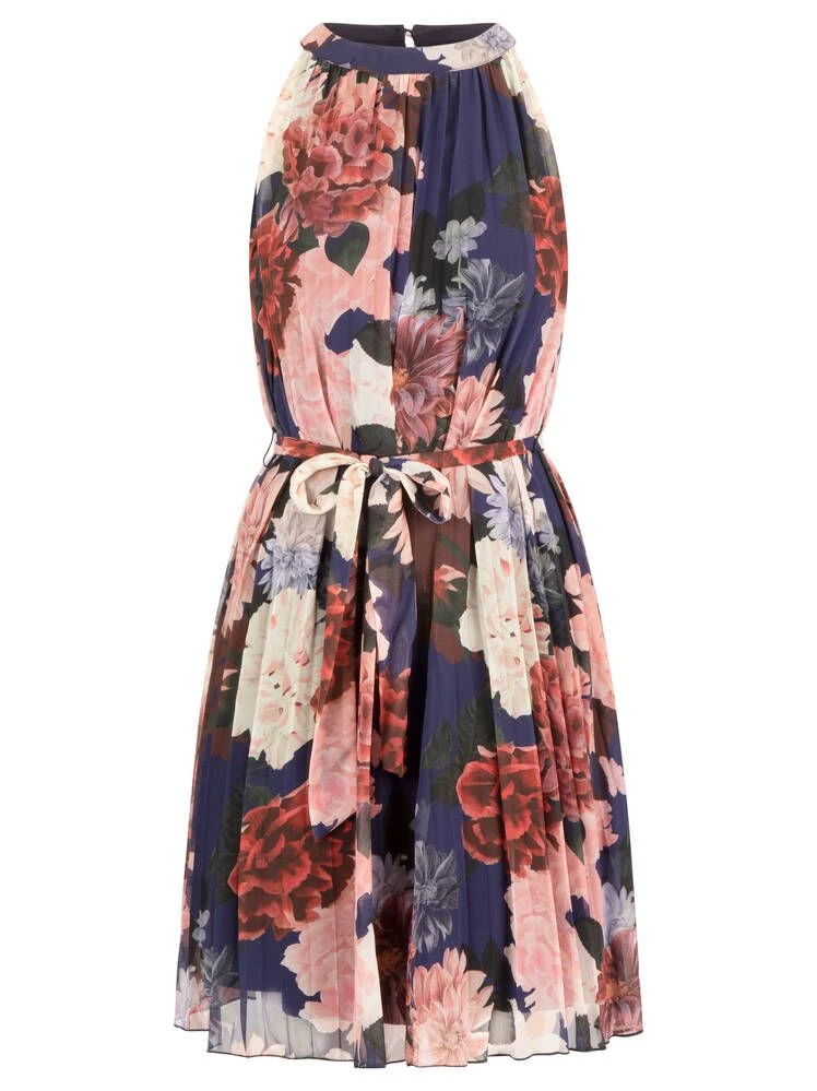 Naisten laskostettu, sifonkinen mekko kukkakuosilla.