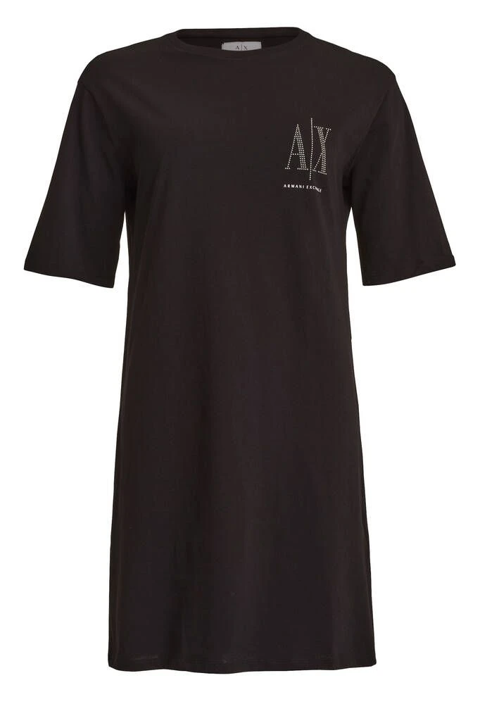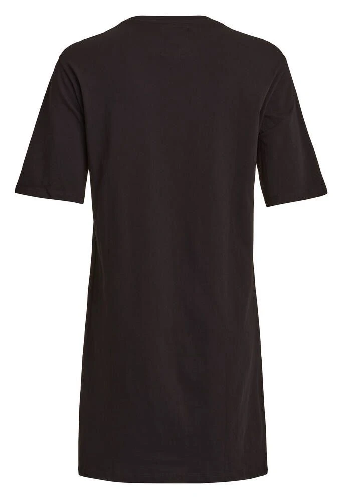 Rento puuvillainen t-paitamekko pyöreällä pääntiellä. Rinnassa on kaunis strassikuvioitu tekstilogo.
