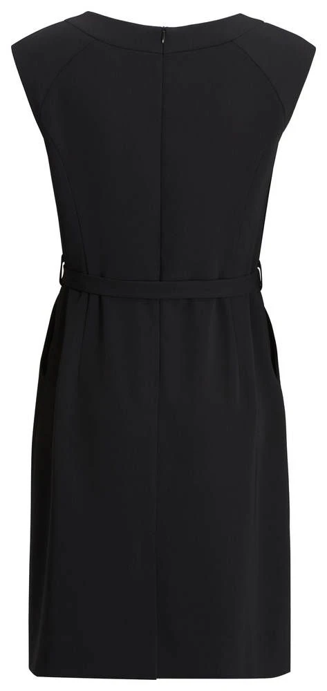 Tyylikäs hihaton kotelomekko. Istuvuutta mekkoon saat kevyen kangasvyön avulla. Rentoutta mekkoon tuo sivuilla olevat taskut. Koossa 38 keskitaka pituus on 93 cm ja rinnanympärys 85 cm.