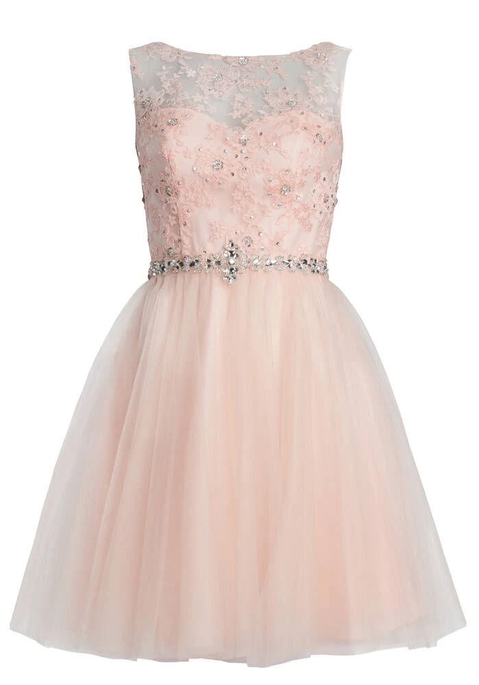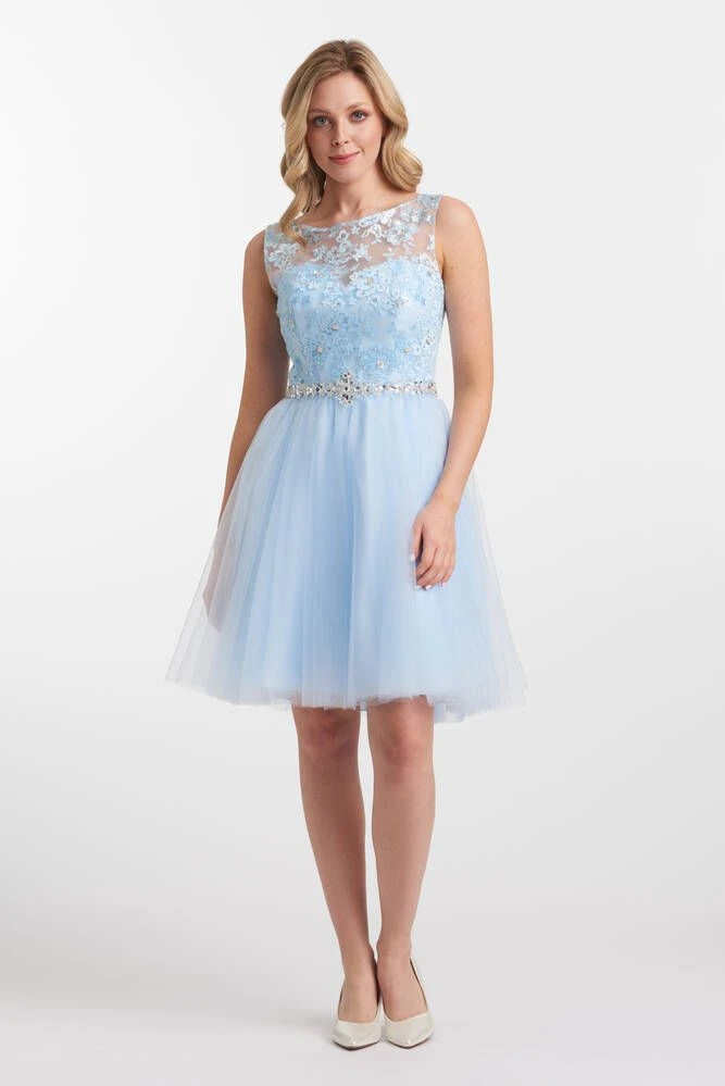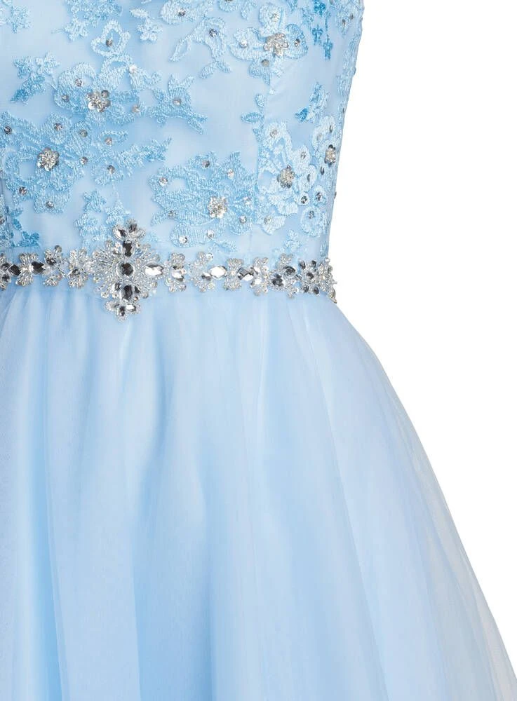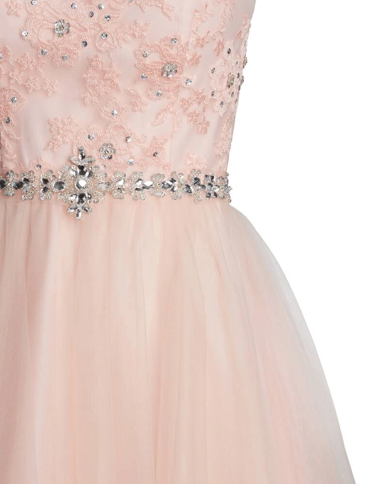 Naisten upea juhlamekko muhkealla tyllihelmalla. Mekon yläosa on kirjailtua pitsiä, jossa on kiiltävät strassikoristeet.