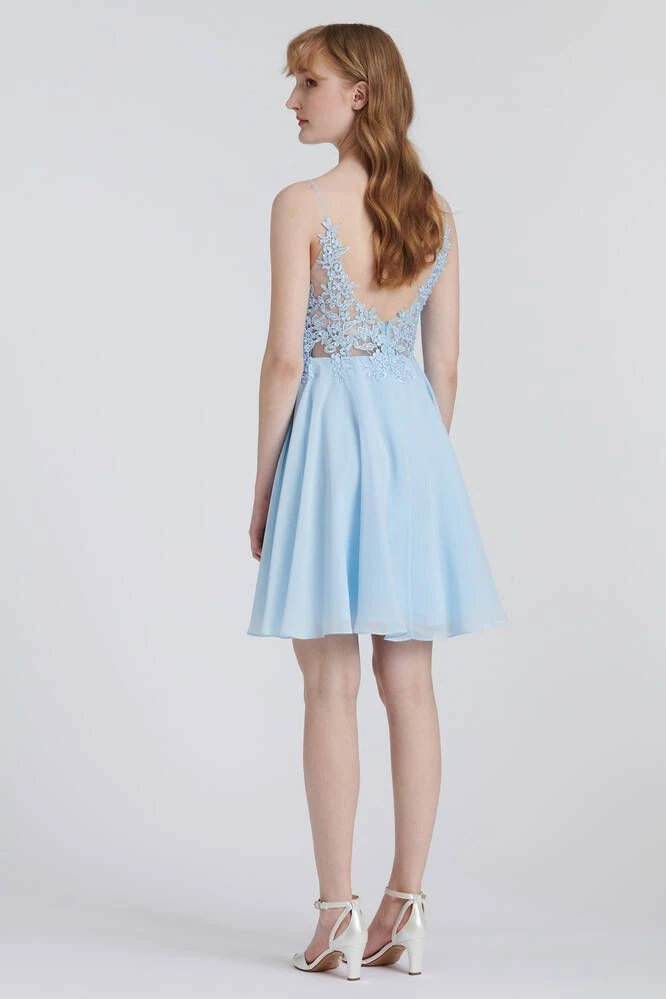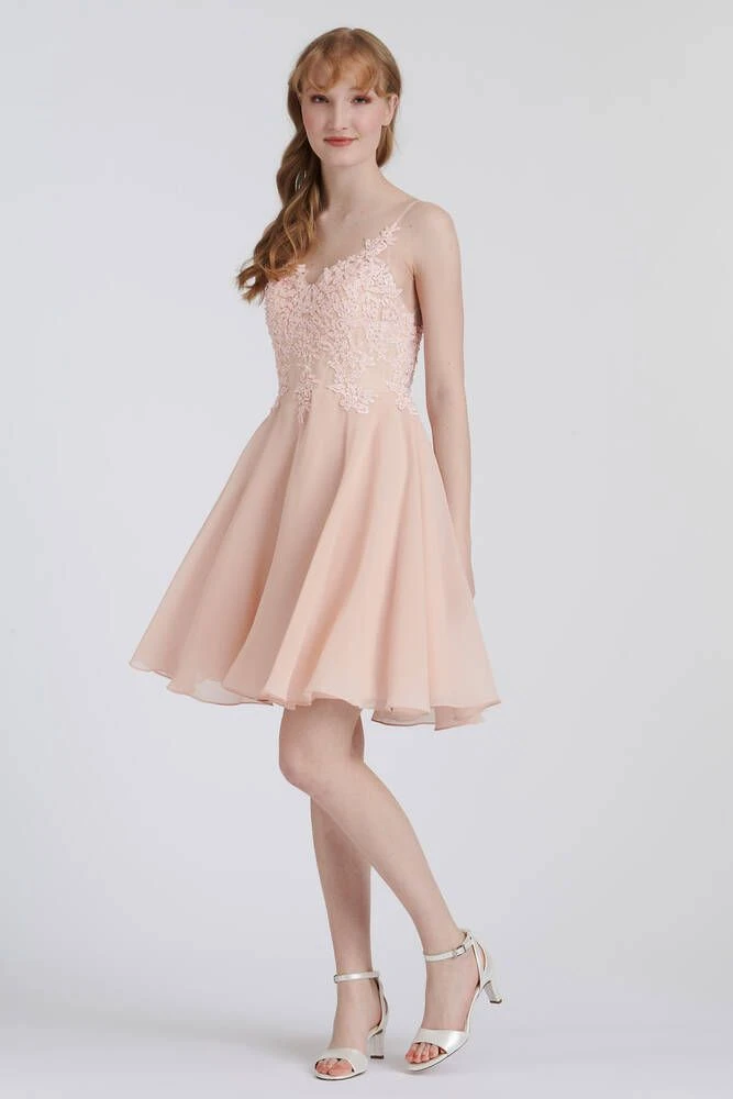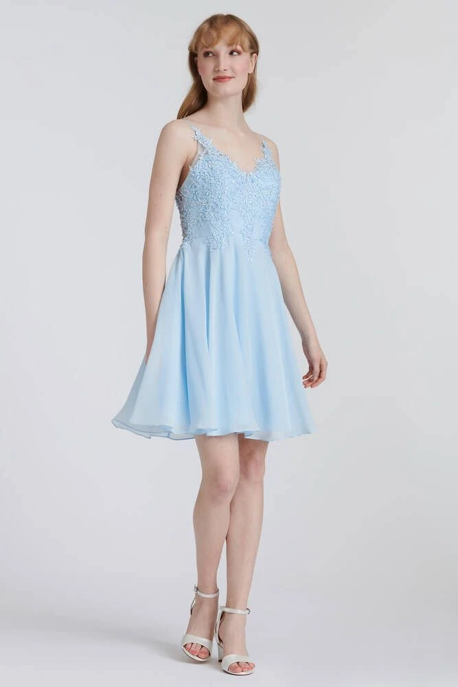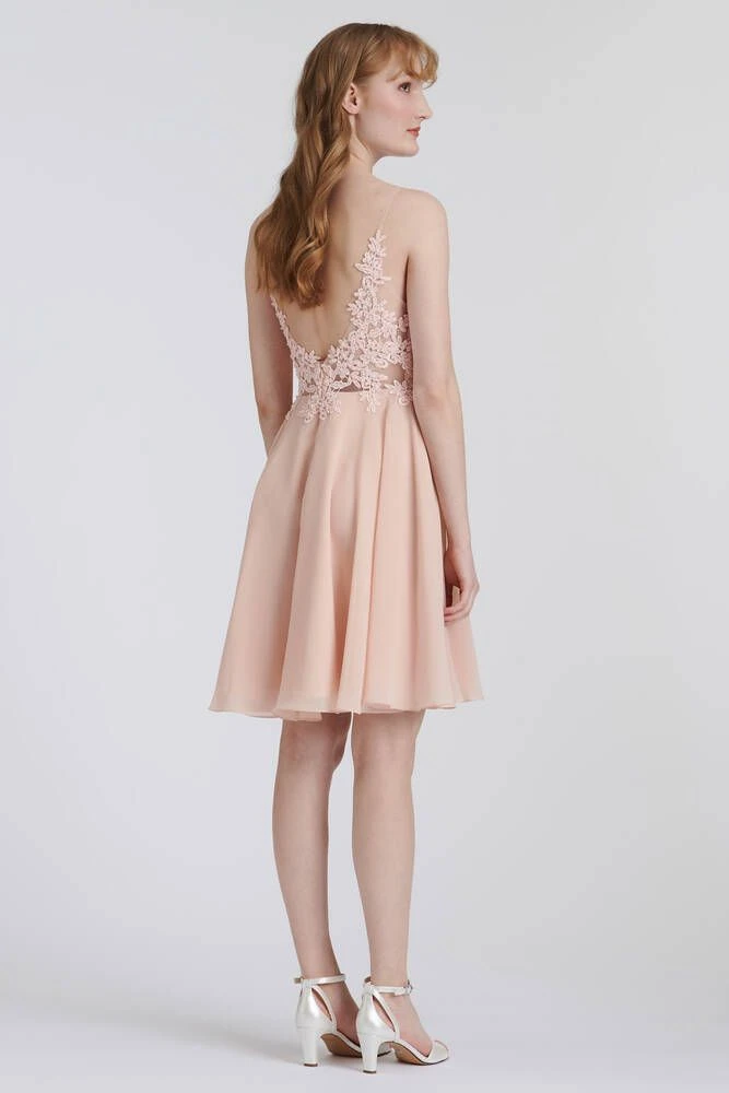 Ihana sifonkihelmainen mekko, jonka yläosa on näyttävästi koristeltua pitsiä. Mekossa on kapeat olkaimet sekä avoin selkä.