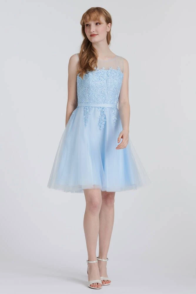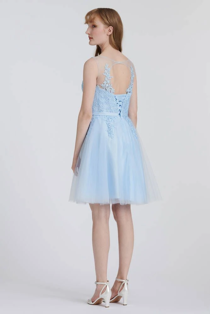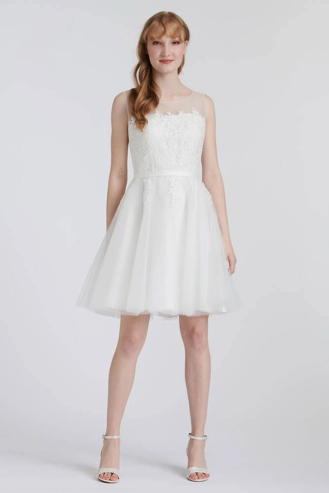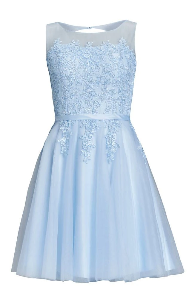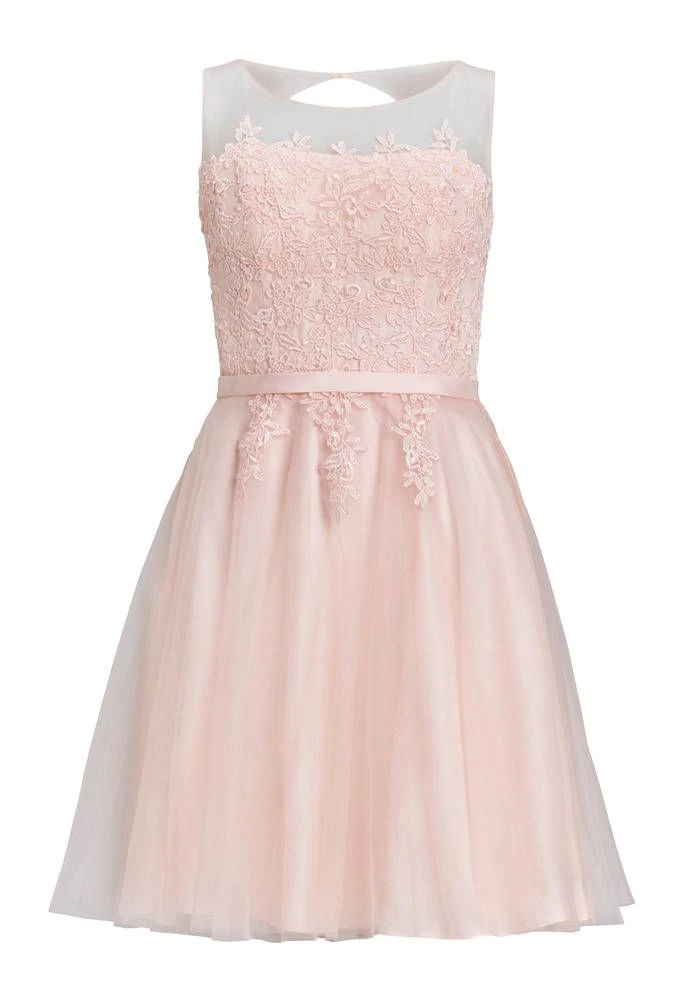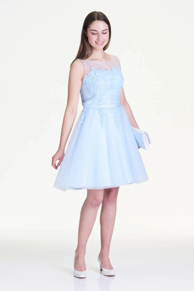 Kaunis tyllimekko, jossa on kirjailtu yläosa. Avonainen selkäosa ja nyörit kruunaavat juhlavan kokonaisuuden. Nyörien avulla säädät helposti mekon istuvuutta.
