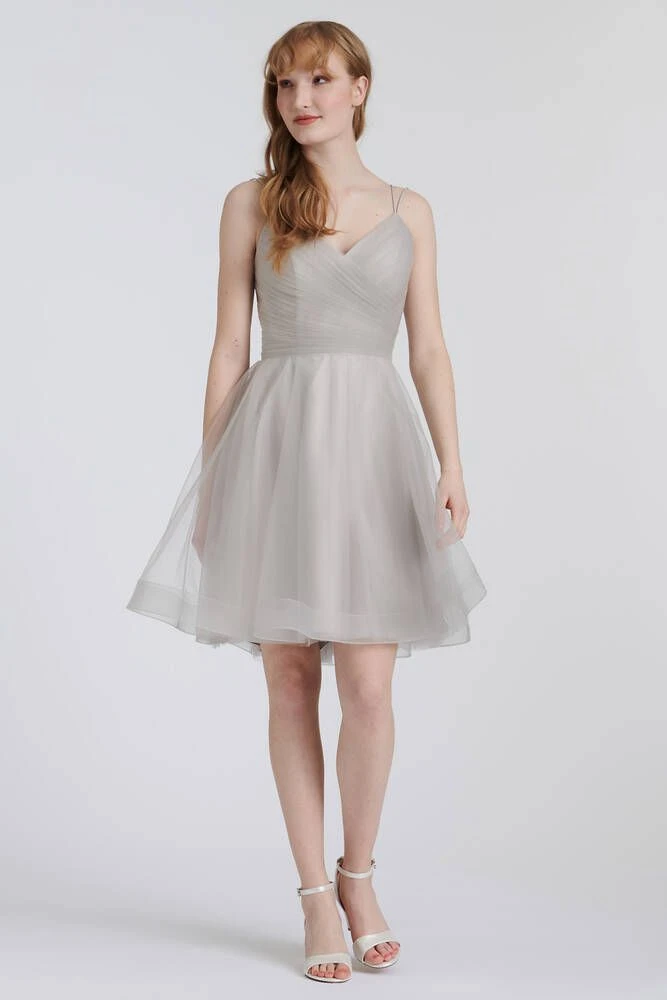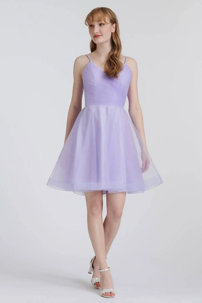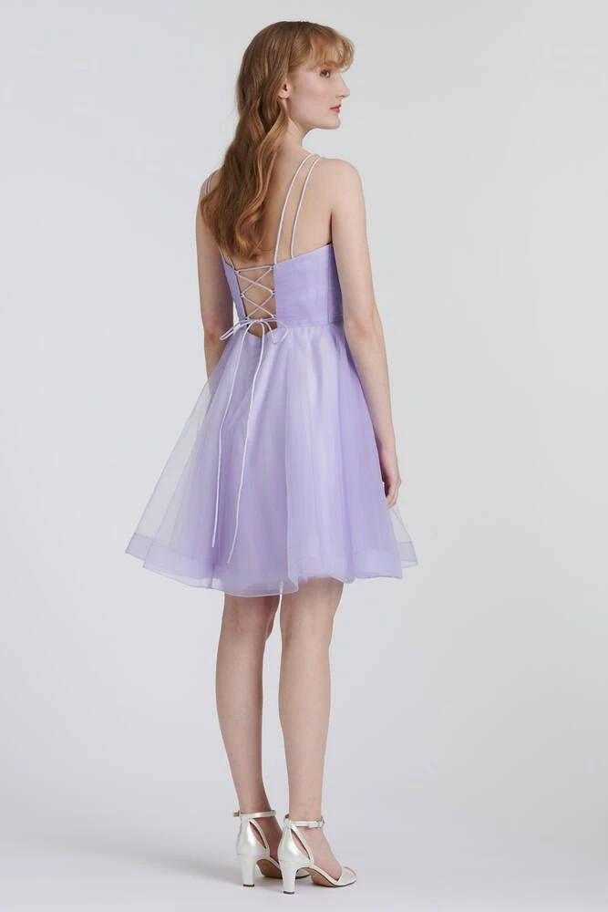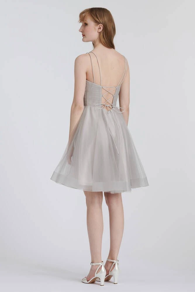 Upea tyllimekko kietaisumallisella yläosalla. Mekon takana on nyörikiinnitys, jolla saa sädettyä mekon istuvuutta.