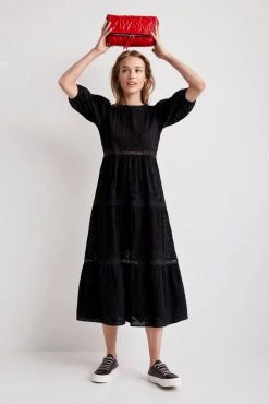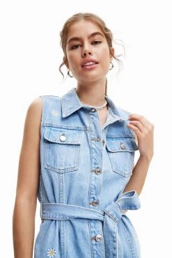 Pieni crossbody-laukku keinonahasta, jossa on kukkakirjontaa ja kaksi kahvaa.