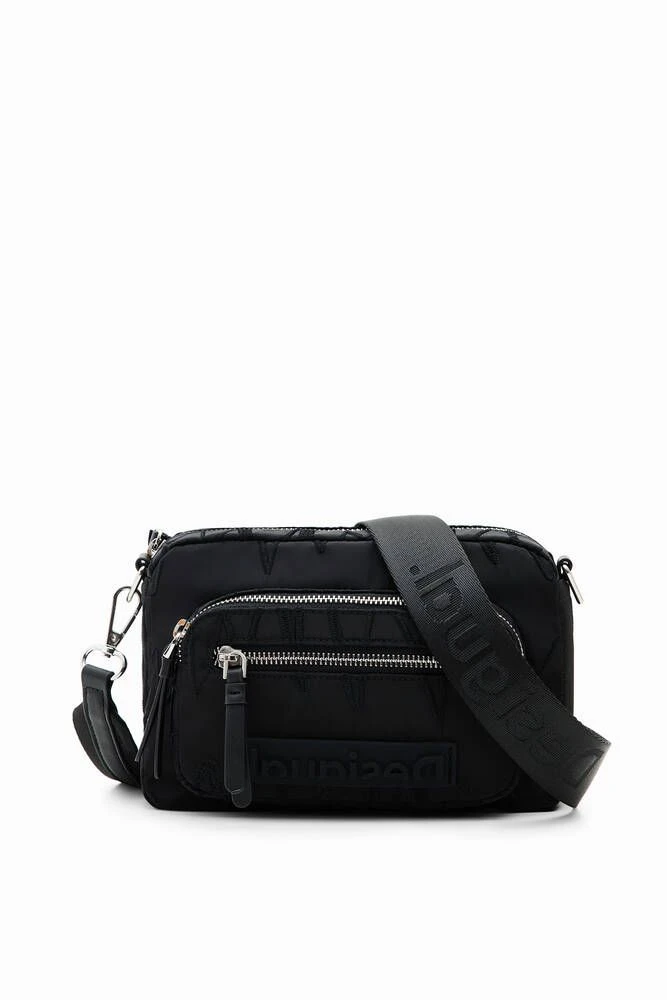 Pieni crossbody-laukku brodeerauksella ja useilla taskuilla. Laukussa on edessä ja hihnassa Desigual-logo. Laukun mukana tulee irrotettava pieni pussukka.