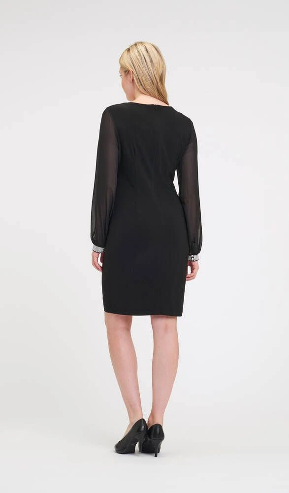 Naisten upea yksivärinen juhlamekko joustavasta materiaalista. Mekossa on kietaisumallinen yläosa, jossa on timanttikoristelua sekä sifonkihihat, joissa on hihansuissa timanttikoristelu.