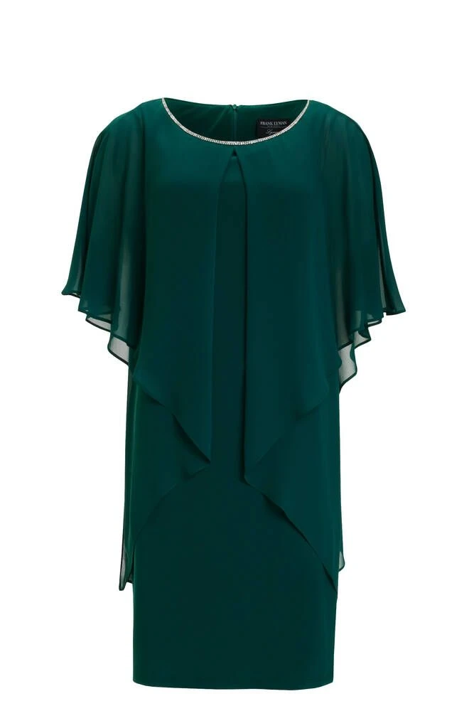 Naisten juhlamekko viittamaisella sifonki yläosalla. Mekossa on pääntiellä timanttinauhaa.