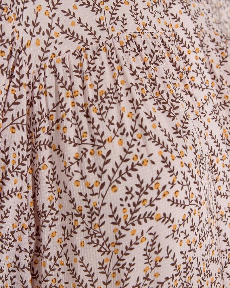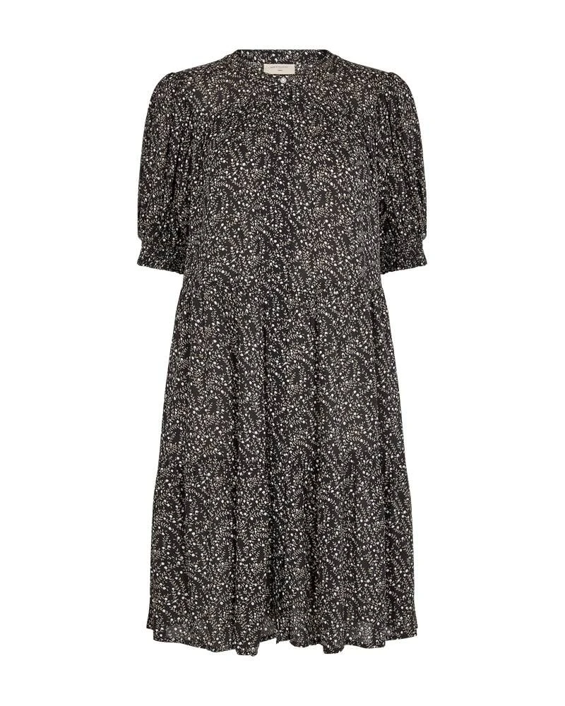 Naisten kukkakuosinen mekko pussihihoilla.