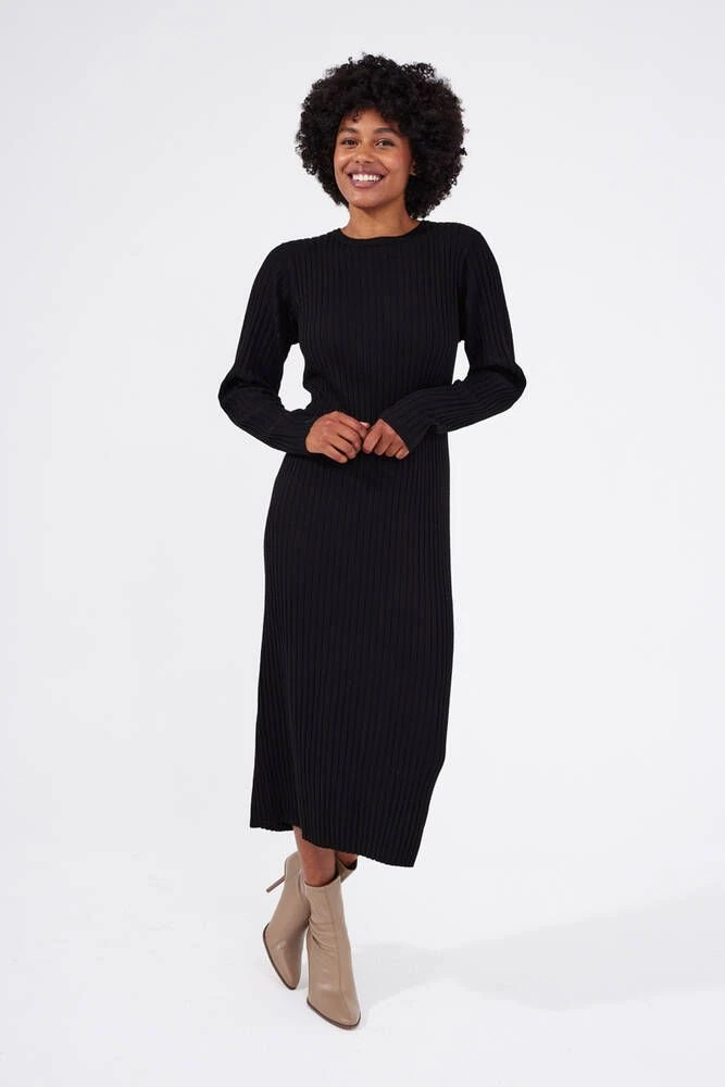Naisten trendikäs, pitkä neulemekko ribbineuloksesta. Mekossa on o-pääntie ja pitkät hihat.