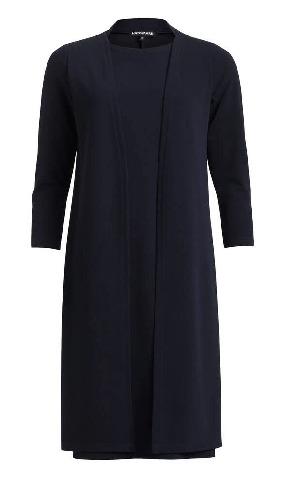 Naisten monikäyttöinen ja miellyttävän joustava 2 in 1 -mekko. Upea kokonaisuus on yhdistelmä klassista kotelomekkoa sekä samaa sävyä olevaa jakkua, jossa on 3/4-hihat.