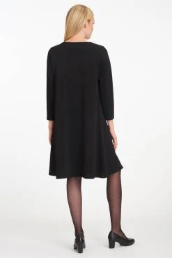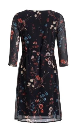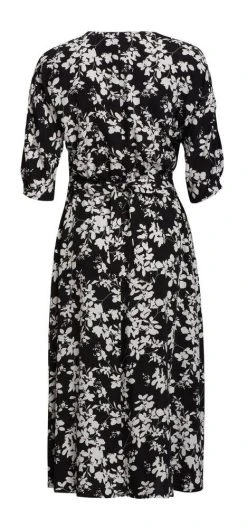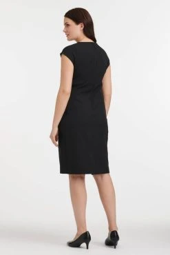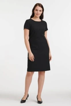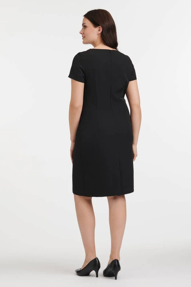 Naisten tyylikäs ja klassinen mekko lyhyillä hihoilla. Mekon takapuolella on selässä piilovetoketju ja helmassa halkio.