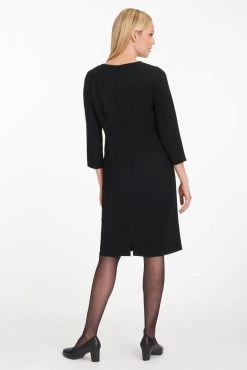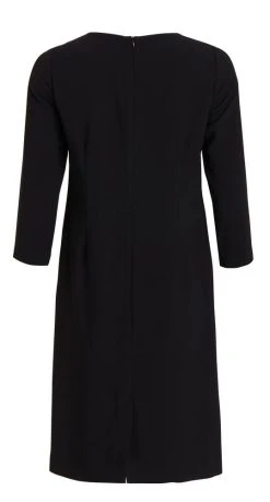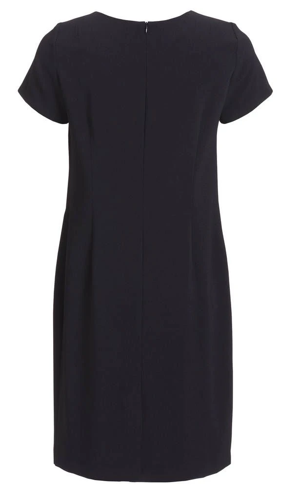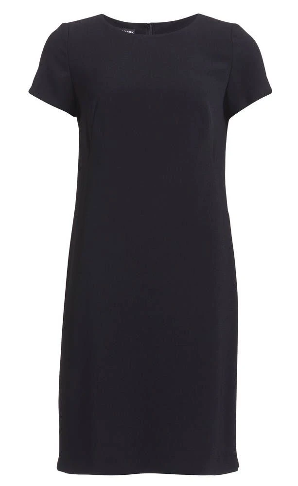Kevyt vuoriton mekko lyhyillä hihoilla ja pyöreällä pääntiellä. Monikäyttöisen mekon selkäpuolen helmassa on pieni keskihalkio. Niskasta lähtevä pitkä piilovetoketju helpottaa pukemista.