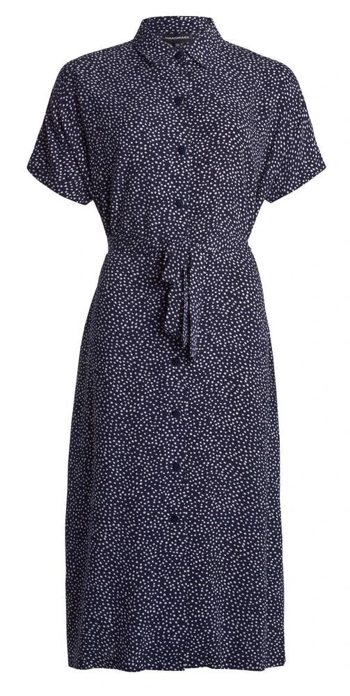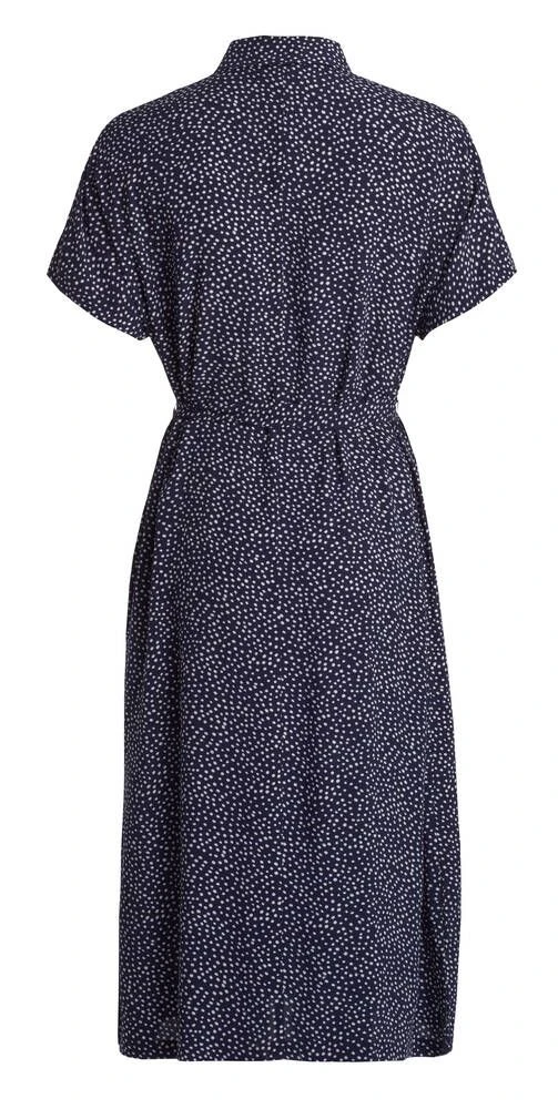 Naisten holkkihihainen paitamekko trendikkäällä pilkkukuosilla. Kauniisti laskeutuvan mekon sivusaumoissa on kätevät piilotaskut ja vyötäröllä solmittava nauha. Helman sivuilla on naiselliset halkiot.