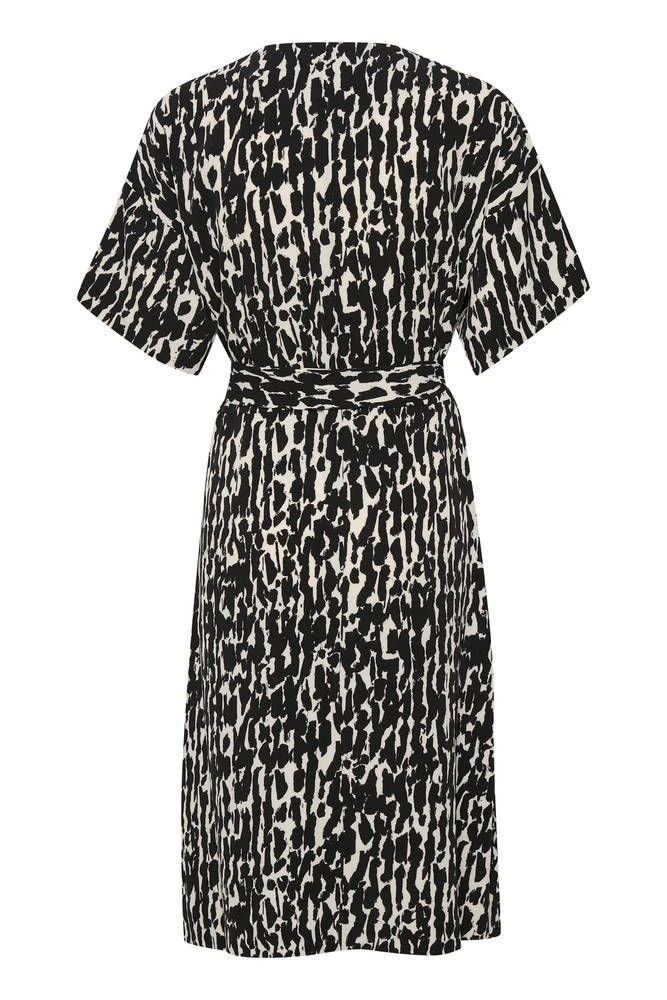 Kaunis polvipituinen mekko V-pääntiellä. Lyhythihaista mekko voi käyttää joko vyön kanssa tai rennosti ilman vyötä. Kauniissa sileäpintaisessa mekossa on taskut sivuillla.