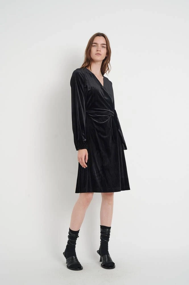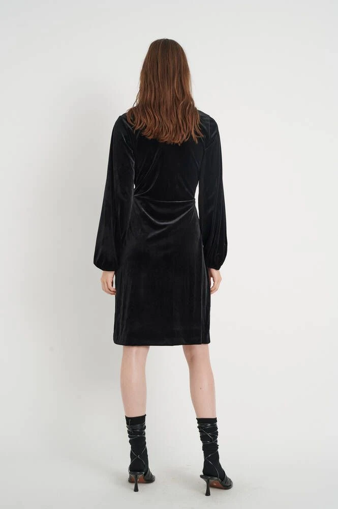 Upea samettipintainen kietaisumekko. Miellyttävän pehmeä ja joustava materiaali lisää mekon käyttömukavuutta.