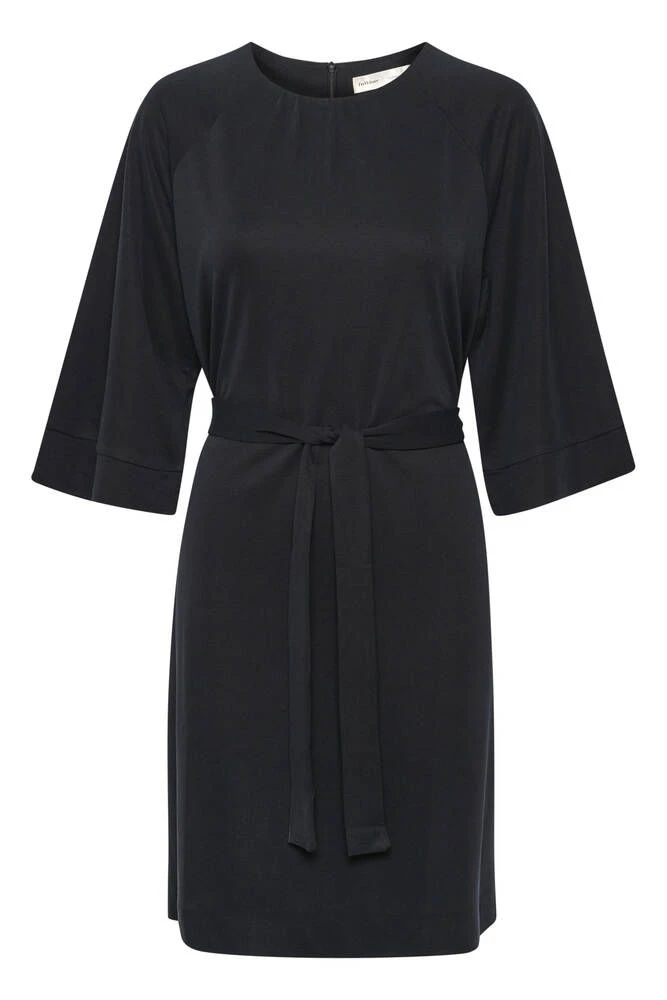 Pehmeästä materiaalista valmistettu yksivärinen mekko leveillä, vajaamittaisilla hihoilla. Vyötäröllä on istuvuutta lisäävä solmittava vyö ja selkäpuolella kätevä vetoketjukiinnitys.