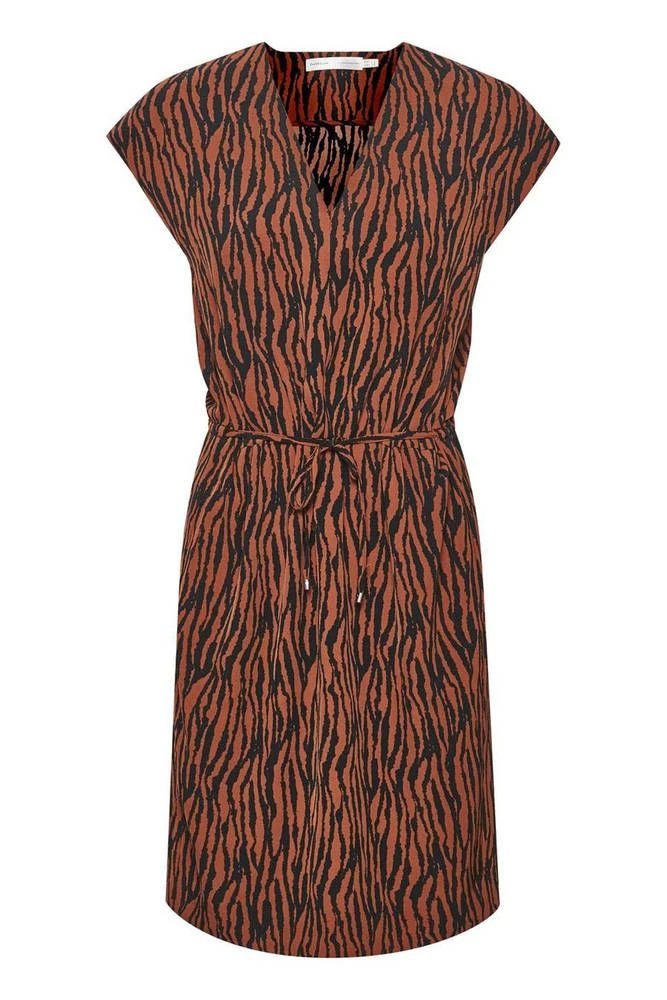 Kaunis mekko seeprakuosilla. Istuvuutta mekkoon saat vyötärölle solmittavan nauhan avulla.