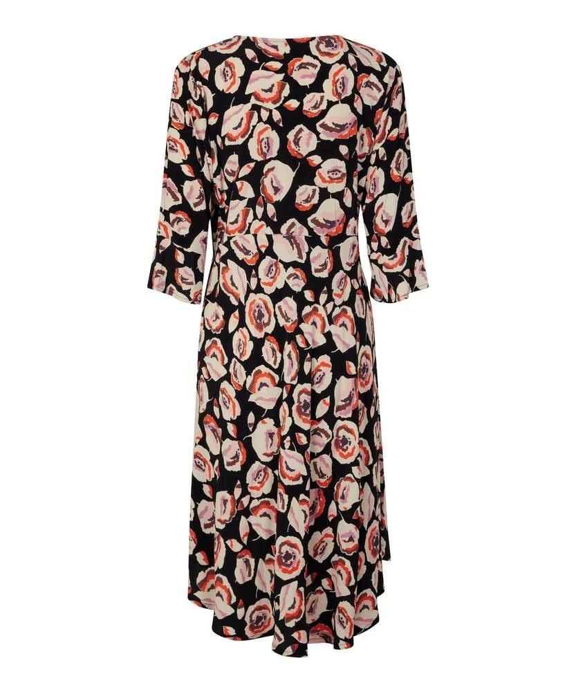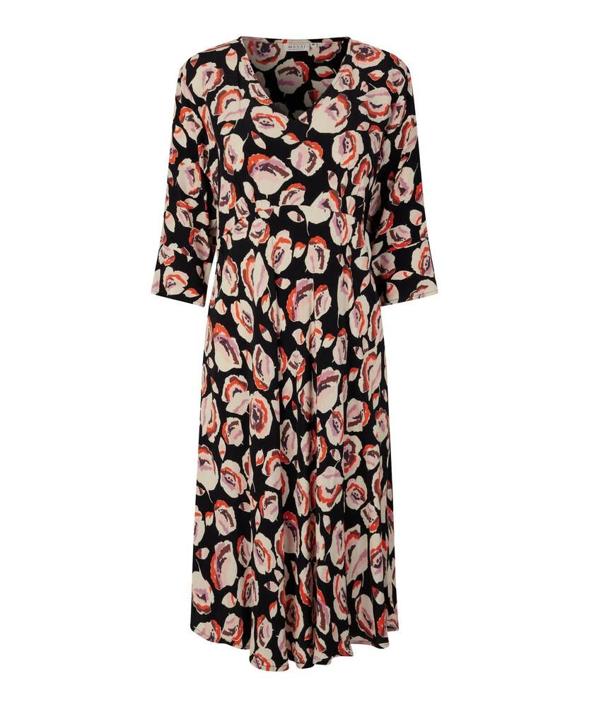 Naisten ihana viskoosimekko V-pääntiellä ja vajaamittaisilla hihoilla. Leveä helma viimeistelee kokonaisuuden.