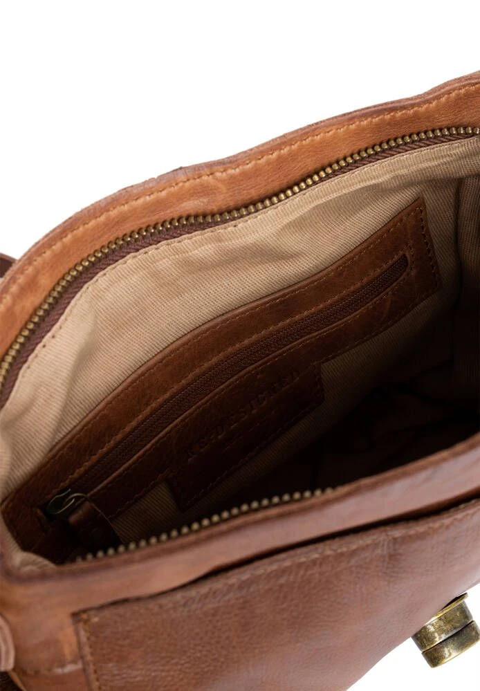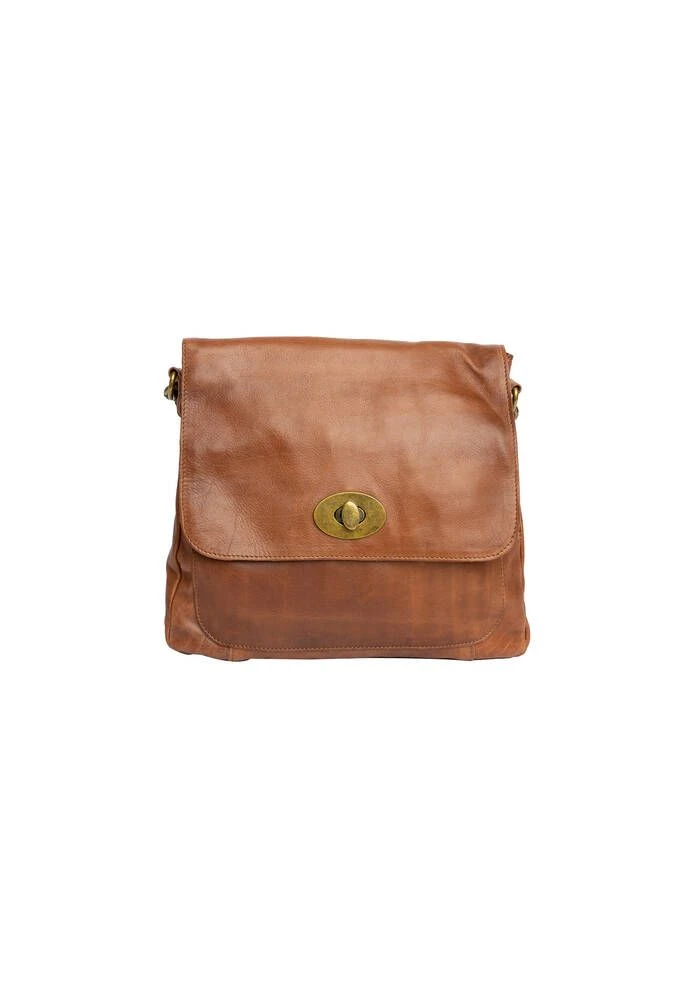 Nahkaisessa olkalaukussa on säädettävä ja irrotettava olkahihna sekä kaunis ajaton malli. Laukun sisällä on yksi suurempi lokero sekä vetoketjullinen tasku. Läpän alla on yksi avoin etutasku sekä vetoketjukiinnitys.