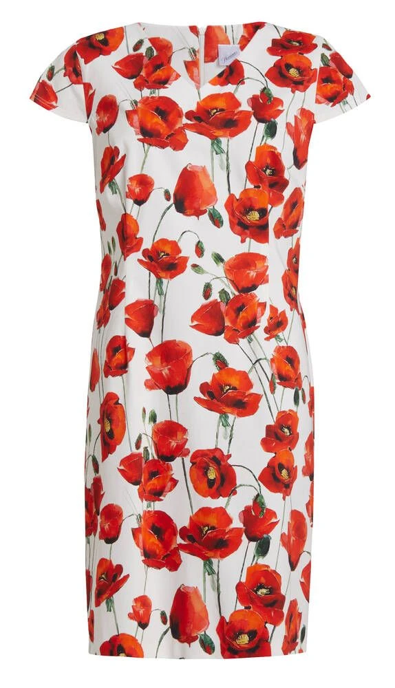 Naisten unikkokuosinen mekko v-pääntiellä ja holkkihihoilla. Mekossa on takana helmassa halkio.