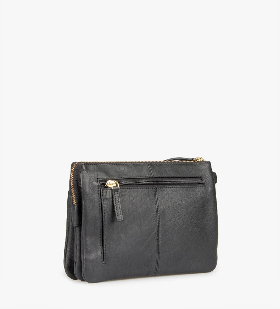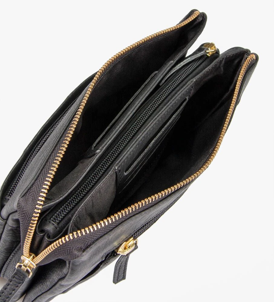 Tyylikäs nahkapintainen laukku, jossa on kolme erillistä osiota. Monen taskun ja korttipaikan ansiosta tavarat on helppo pitää järjestyksessä.