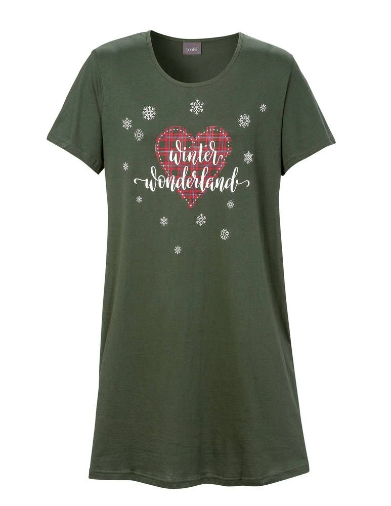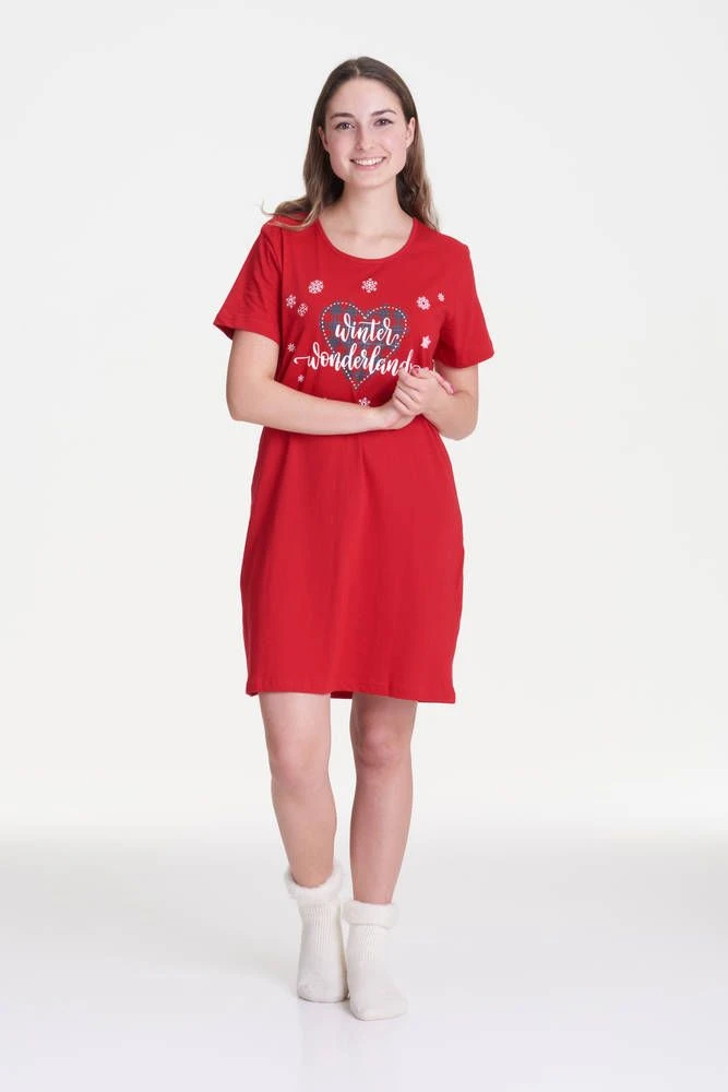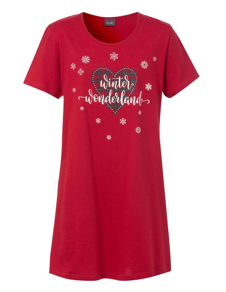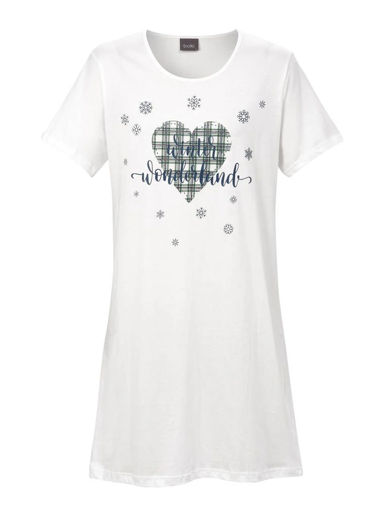 Puuvillainen yöpaita lyhyillä hihoilla ja etupuolen näyttävällä printillä.