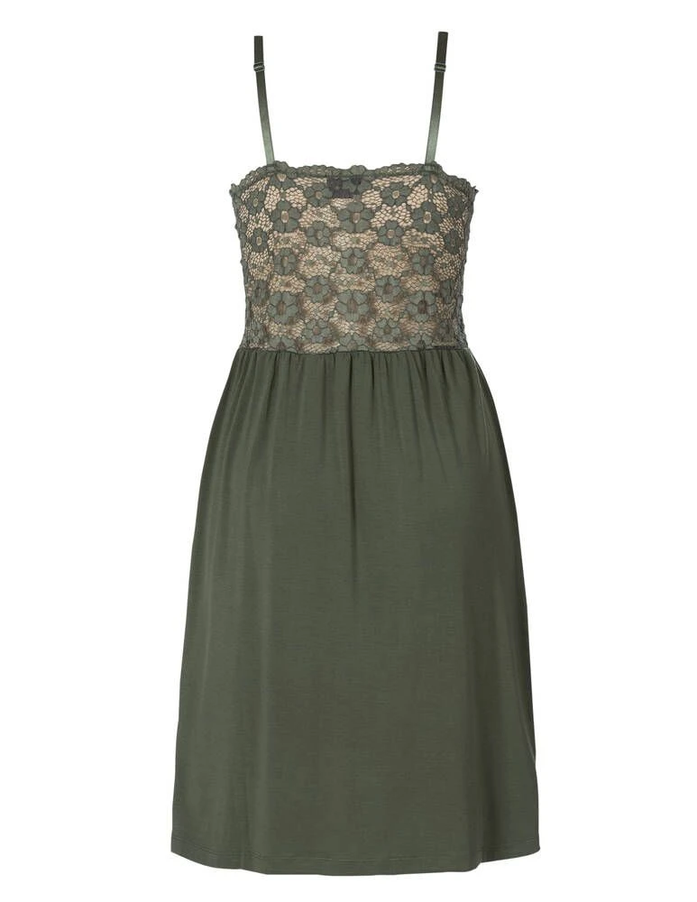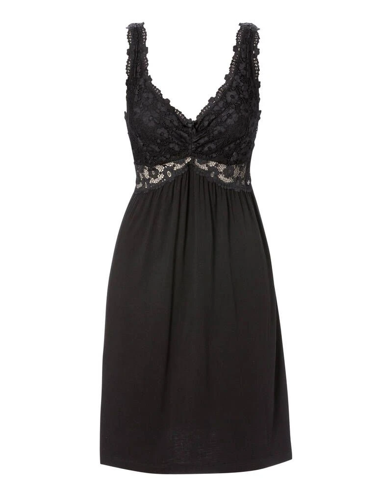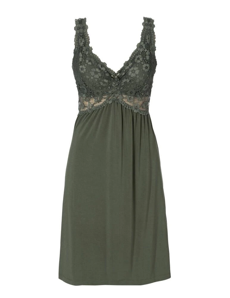 Naisten hihaton yöpaita pitsisellä yläosalla.