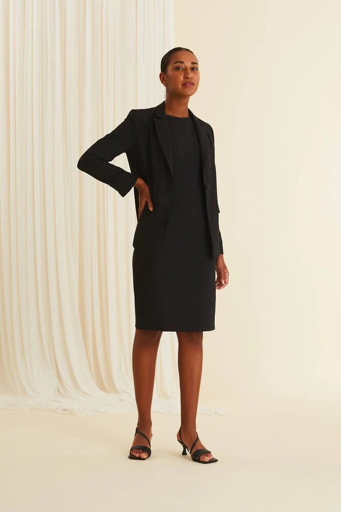Naisten upea Karen-mekko on valmistettu laadukkaasta villasekoitteesta. Joustava materiaali lisää mekon käyttömukavuutta. Hihattomassa mekossa on tyköistuva yläosa ja takana pukemista helpottava vetoketjukiinnitys sekä pieni halkio. Klassinen mekko on suunniteltu pitkäikäiseksi luottovaatteeksi, joka on helppo yhdistää erilaisiin asuihin vuodesta ja sesongista toiseen.