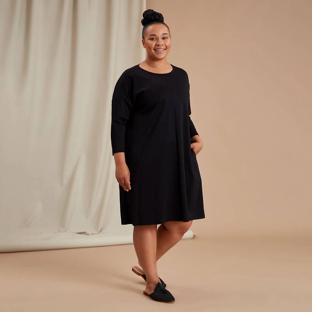 Naisten laatikkoainen Kamilla-mekko on ommeltu laadukkaasta ja miellyttävästä luomupuuvillasta. Vastuullisesti merseroitu neulos on pehmeä iholla sekä kestävä käytössä. Tämä väljä mekko sopii käytettäväksi myös housujen kanssa.