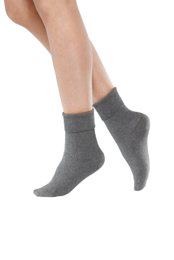 Naisten nilkkasukat, jotka ovat 100% puuvillaa. Sukissa on käännettävä, puristamaton resori.